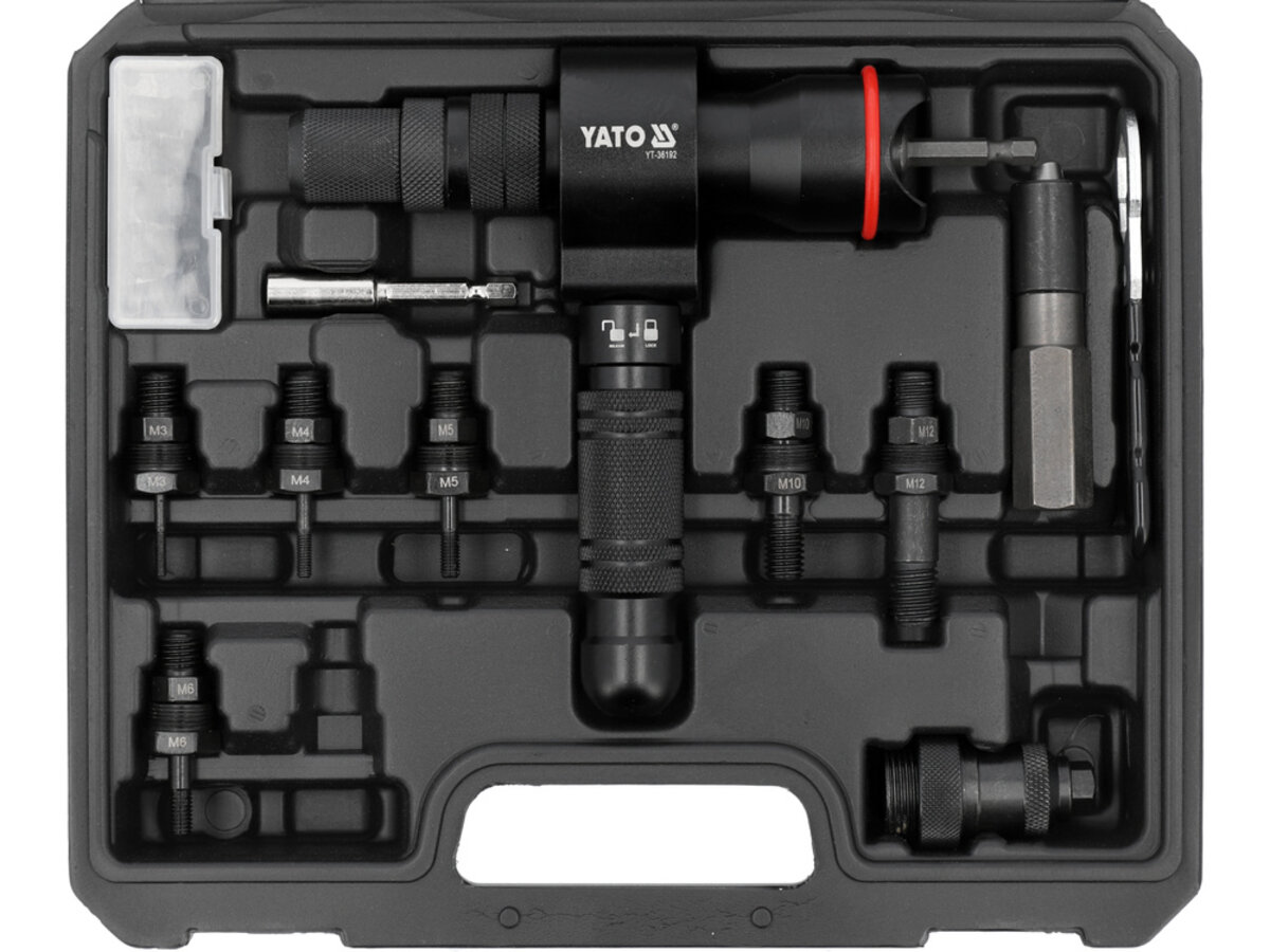 Адаптер-заклепочник до шурупокрута YATO з 6-гран шпинд 1/4" для заклеп 2,4-6,4мм і нітогайок М3- М12