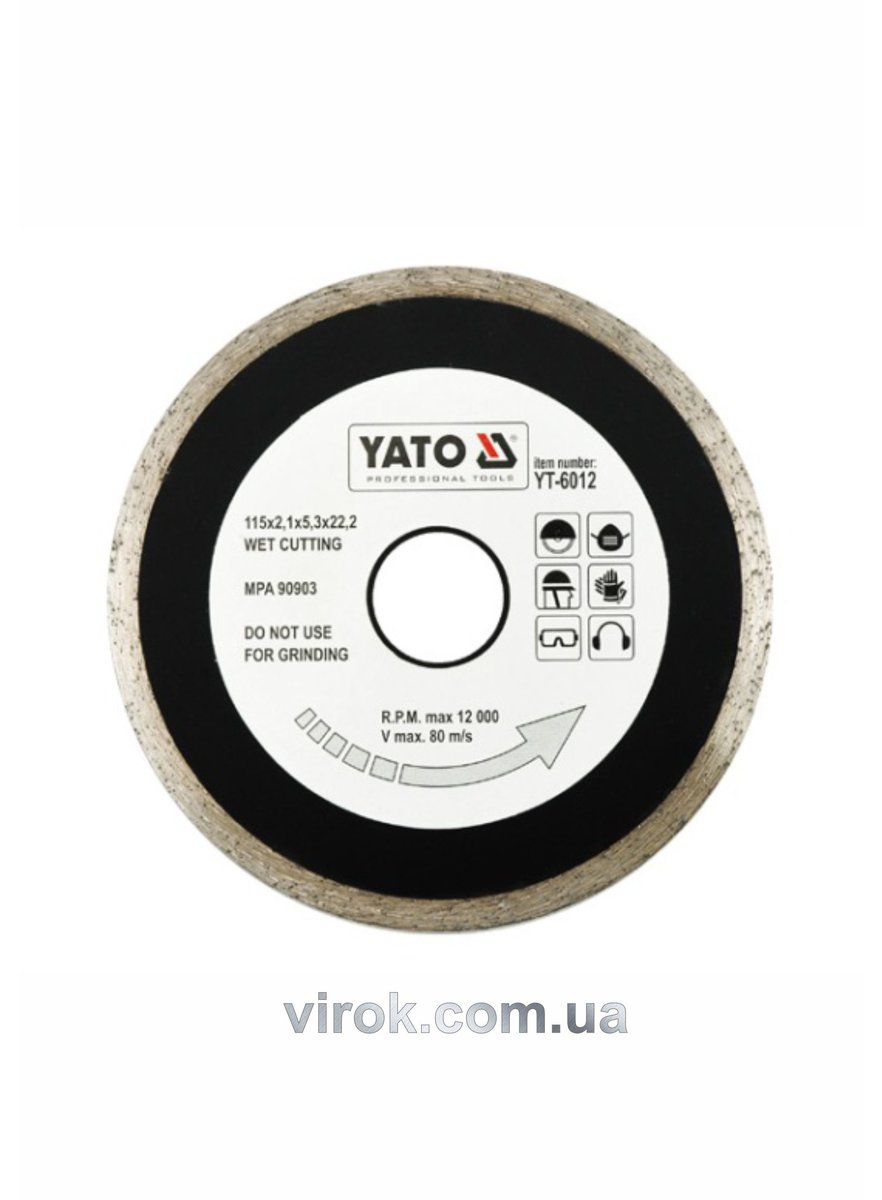 Диск алмазний суцільний YATO : Ø= 115x5,3x22,2 мм. H= 2,1 мм. для мокрої різки [20/200]