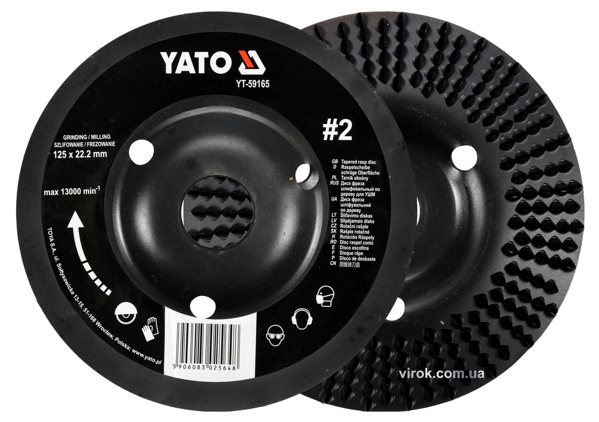 Диск-фреза шліфувальний YATO по дереву, фарбі, шпаклівці, алюмінію; Ø=125/22.2мм, шорсткість №2 [10]