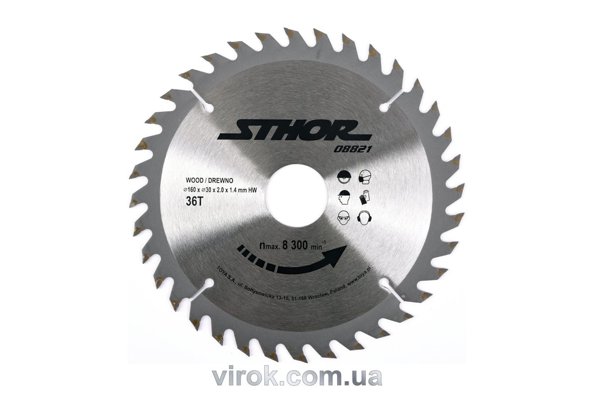 Диск пильний по дереву STHOR. Ø= 160/30 мм, h= 2 мм, 36 зубів [25/50]