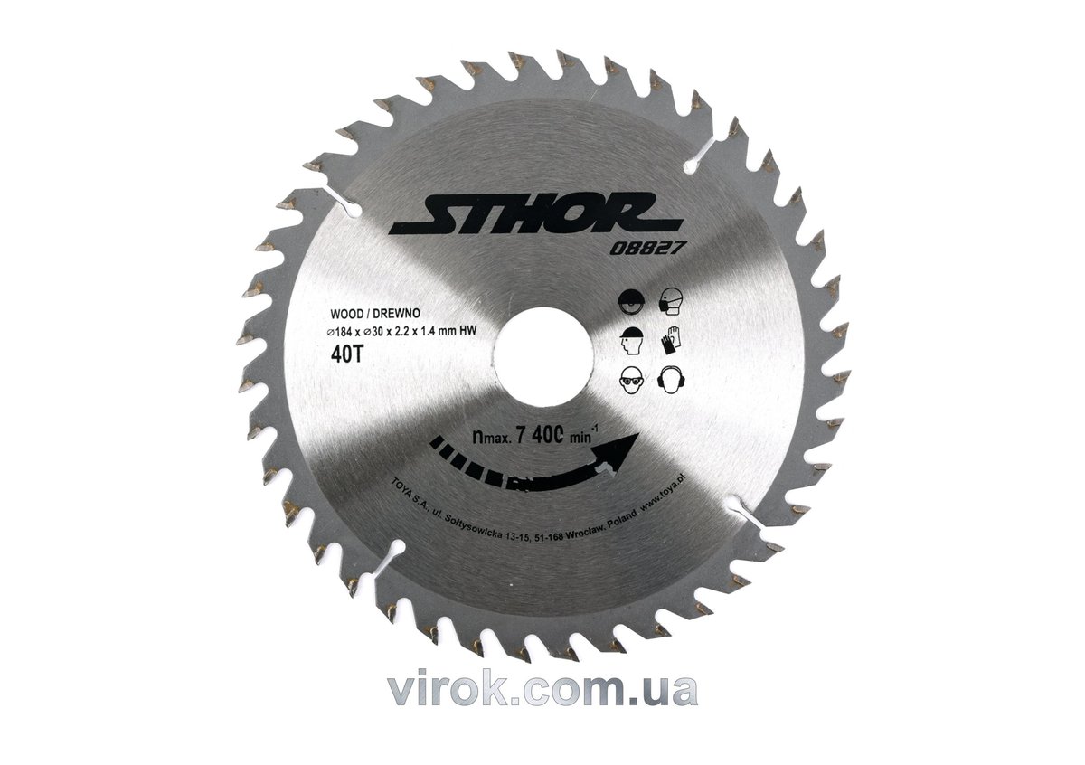 Диск пильний по дереву STHOR. Ø= 184/30 мм, h= 2,2 мм, 40 зубів [10/20]