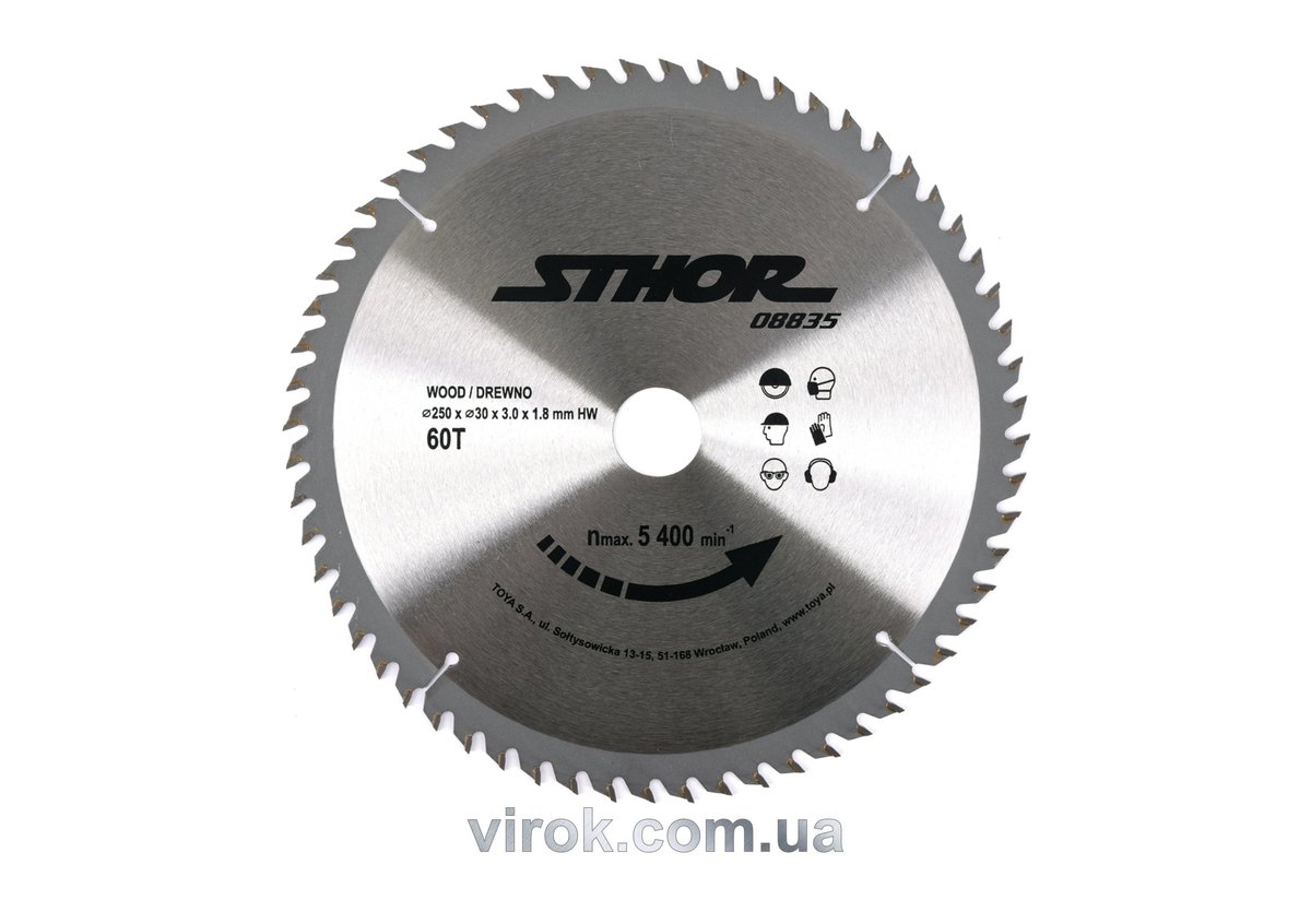 Диск пильний по дереву STHOR. Ø= 250/30 мм, h= 3 мм, 60 зубів [10/20]