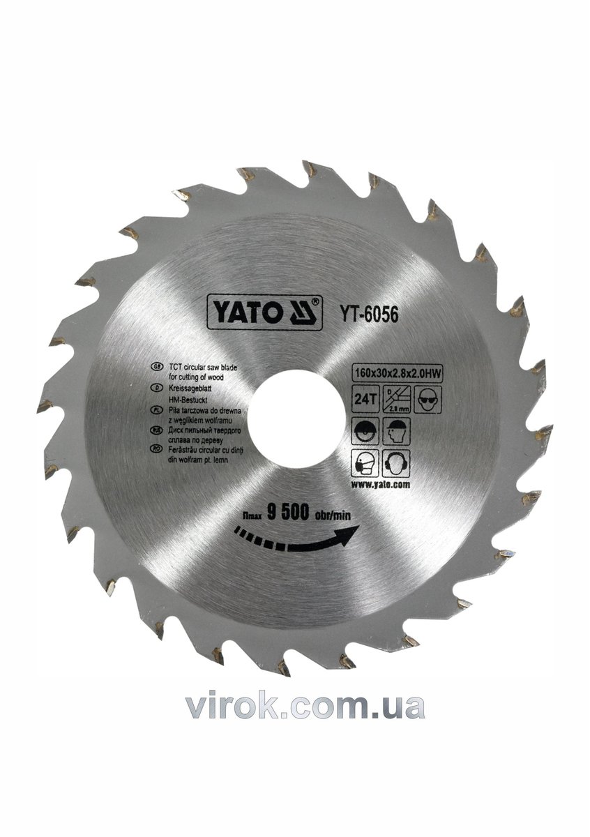 Диск пиляльний победітовий по дереву YATO: 160х30х2.8х2.0 мм, 24 зубці, R.P.M до 9500 1/хв [25/50]