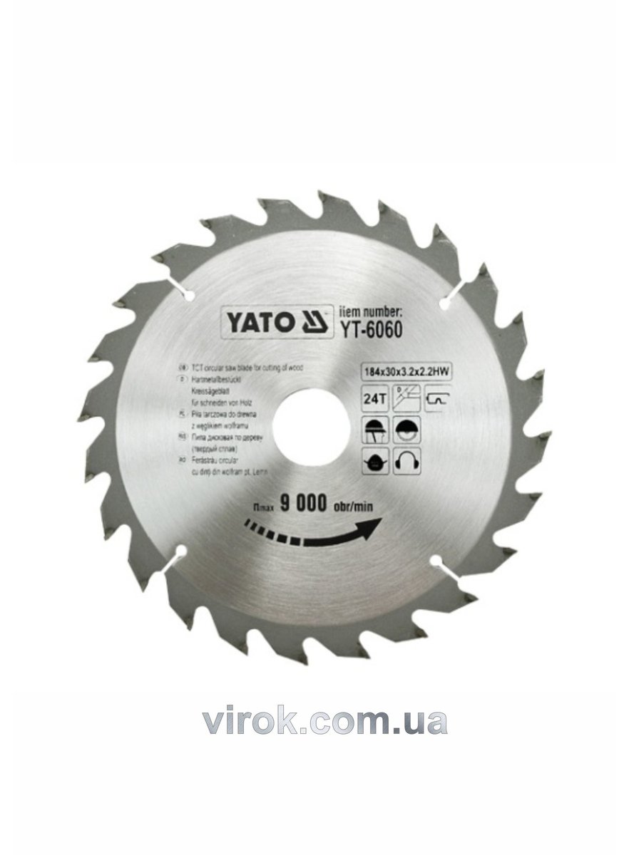 Диск пиляльний победітовий по дереву YATO: 184х30х3.2х2.2 мм, 24 зубці, R.P.M до 9000 1/хв [25/50]