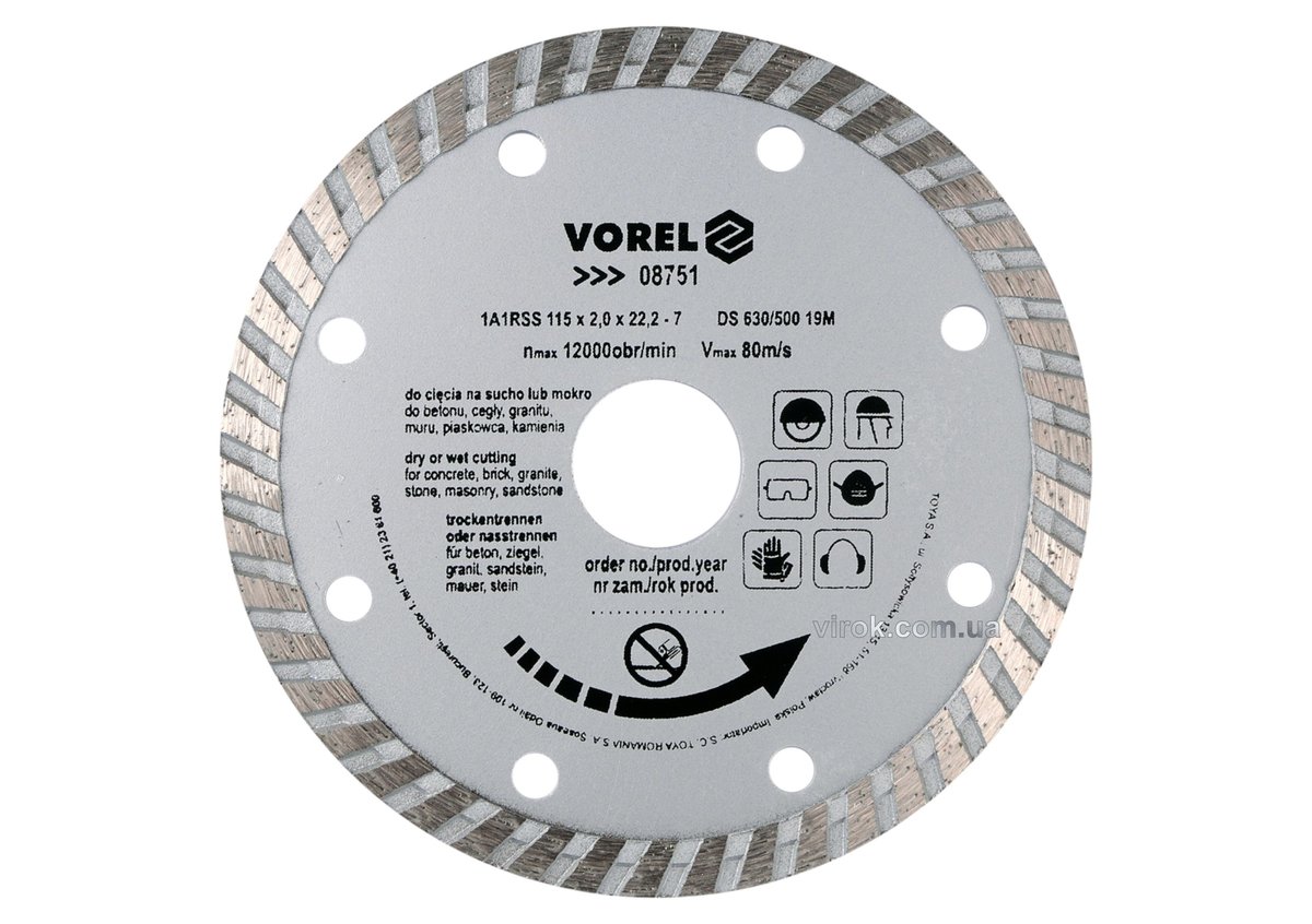 Диск відрізний алмазний VOREL : TURBO Ø= 115 мм [20/200]