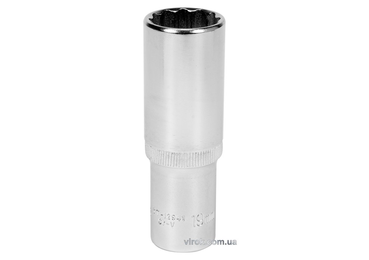 Головка торцева 12-гранна YATO : подовжена, квадрат 1/2", М= 19 мм, L= 77 мм [12/60/120]