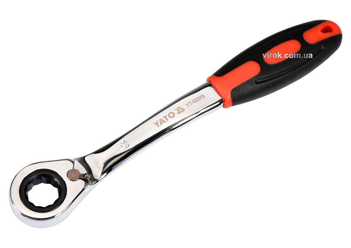 Ключ накидний, вигнутий з тріщаткою YATO: М13, HRC 42-48, Cr-V, з прогумов. ергономічною ручкою [10]