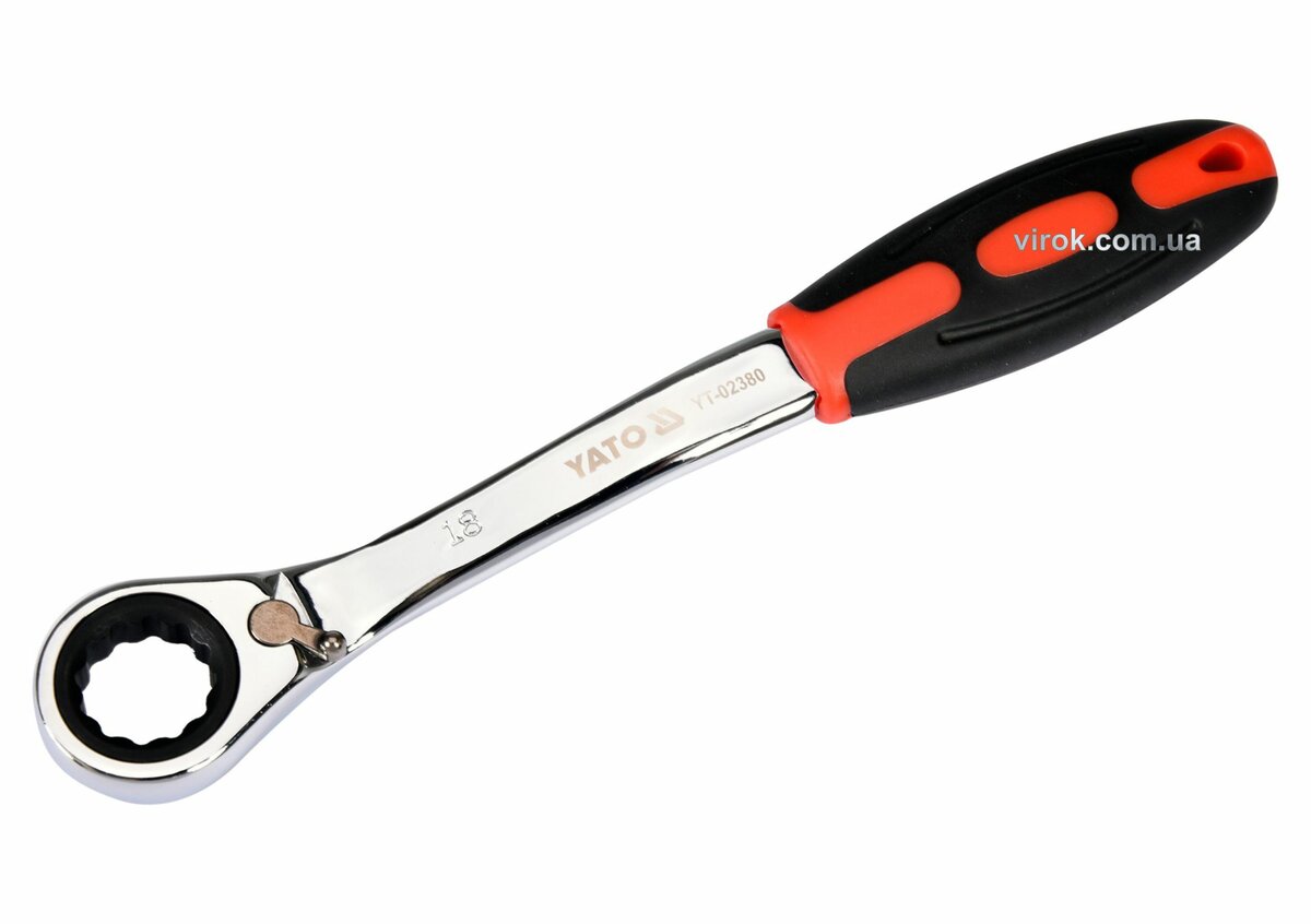Ключ накидний, вигнутий з тріщаткою YATO: М18, HRC 42-48, Cr-V, з прогумованою ергономічною ручкоюDW