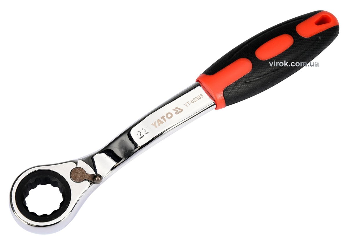 Ключ накидний, вигнутий з тріщаткою YATO: М21,HRC 42-48, Cr-V,з прогумованою ергономічною ручкою(DW)