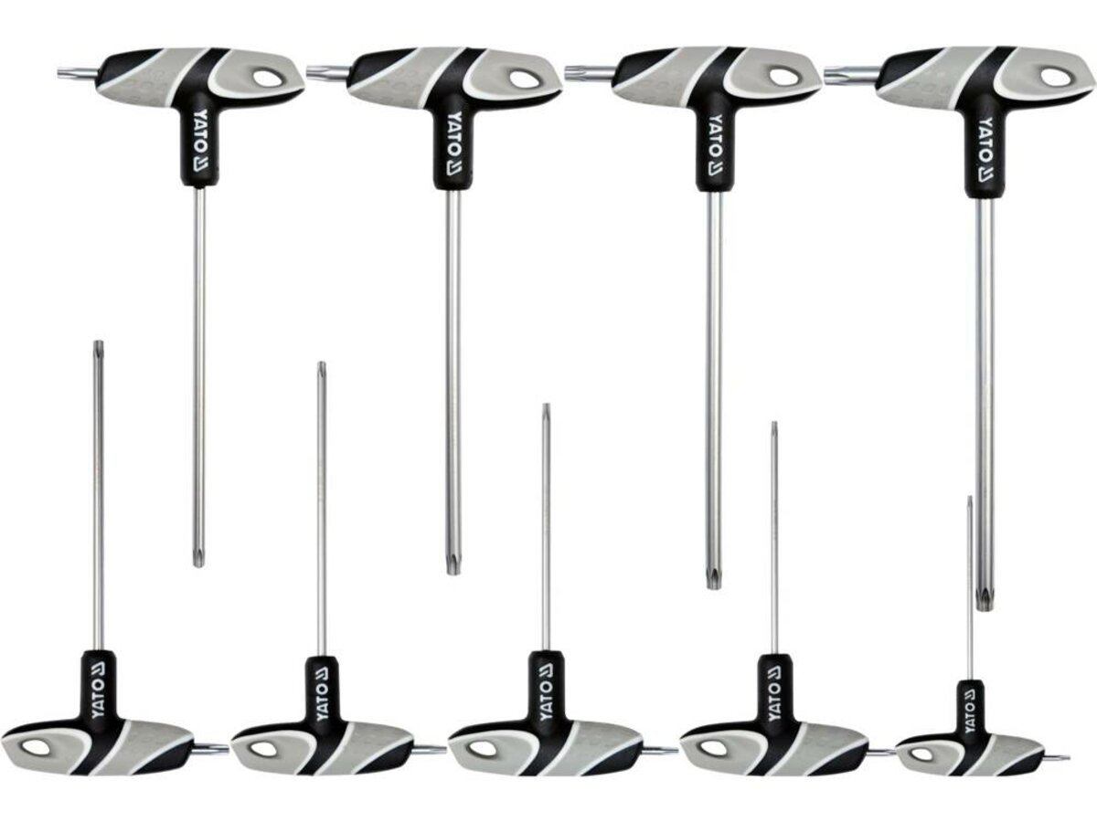 Ключі 6-променеві "TORX TR" з отвором YATO : "T"- образні, Т10-Т50, двосторонні, компл. 9 шт.[12/24]
