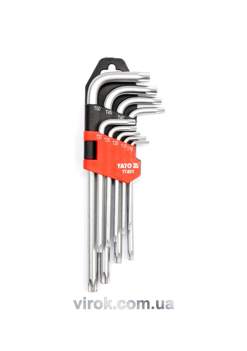 Описание товара ‐ Ключі ТОRХ Г-подібні YATO : Cr-V, Т10-Т50 короткі з отвором, 9 шт. [6/36]