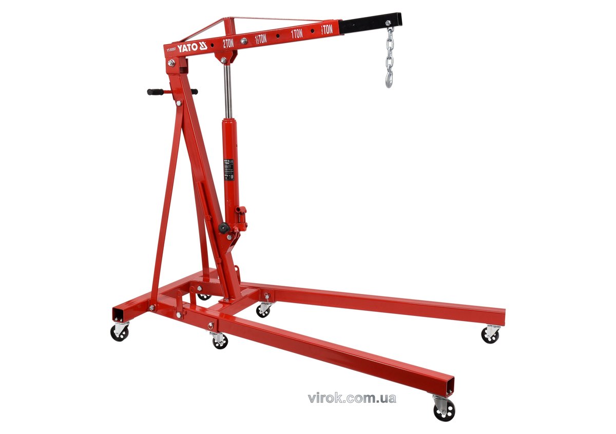 Кран підкатний гідравлічний, розкладний YATO; вантажопід.- 2т, висота- 157 см, діап.- 2,5-230 см [1]