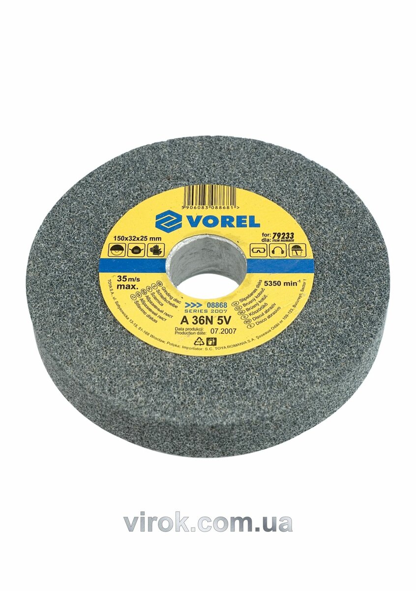 Описание товара ‐ Круг для точила VOREL : 200/16/20(дрібнозернистий) [10]