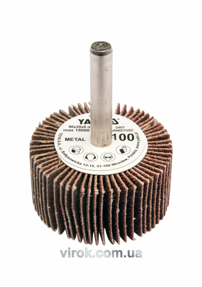 Круг пелюстковий шліфувальний YATO : подовжений Ø= 40 мм К120, шпиндель Ø= 6 мм, H= 20 мм [10/60]