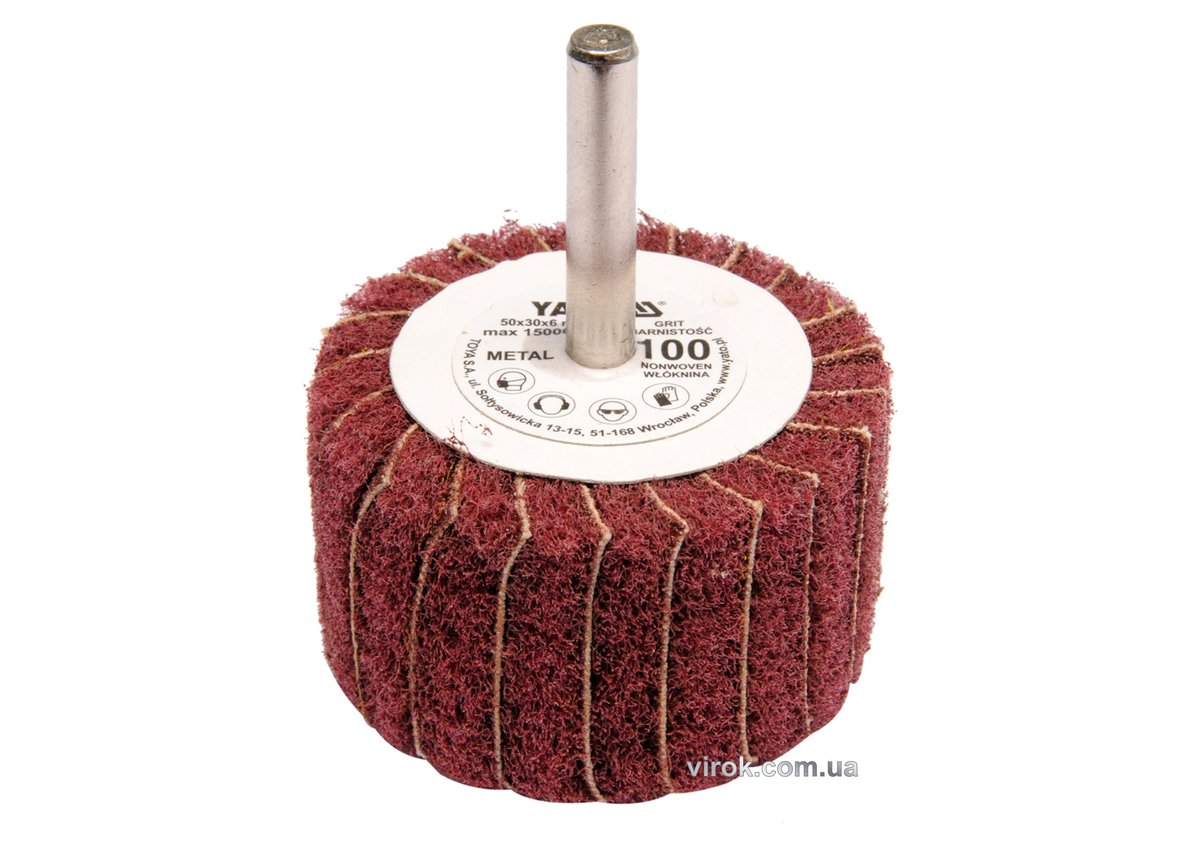 Круг пелюстковий шліфувальний YATO : подовжений Ø= 50 мм К200, шпиндель Ø= 6 мм, H= 30 мм [10/60]
