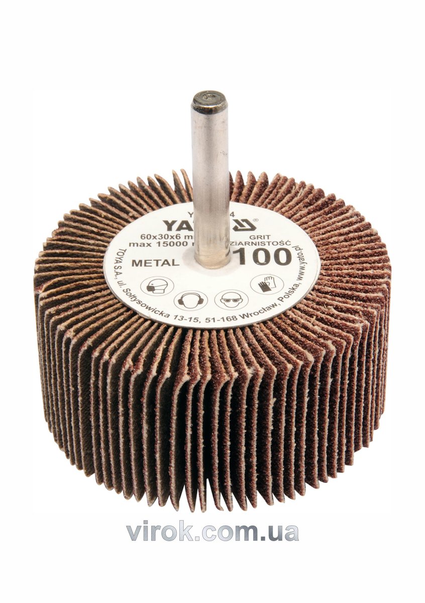 Круг пелюстковий шліфувальний YATO : подовжений Ø= 60 мм К150, шпиндель Ø= 6 мм, H= 30 мм [10/60]