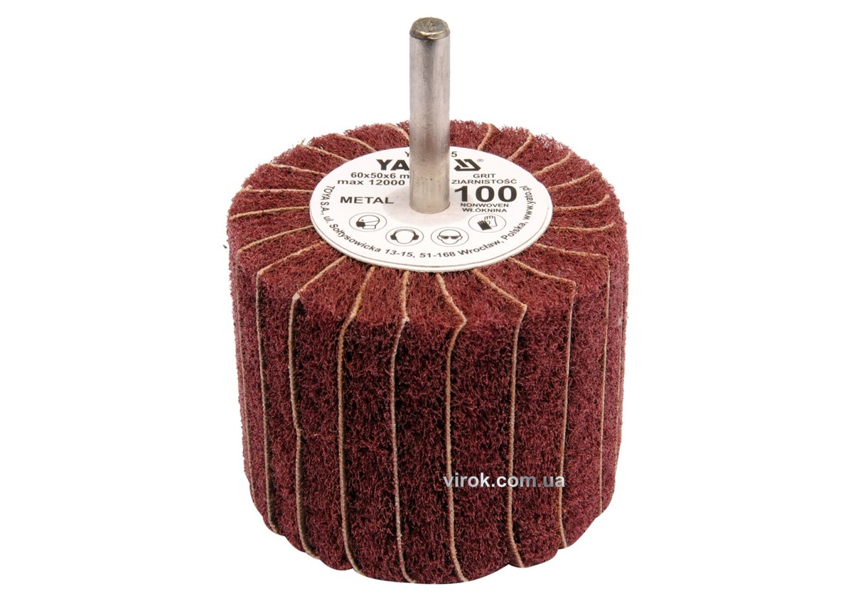 Круг пелюстковий шліфувальний YATO : подовжений Ø=60 мм, К60, шпиндель Ø= 6 мм, H= 50 мм [10/60]