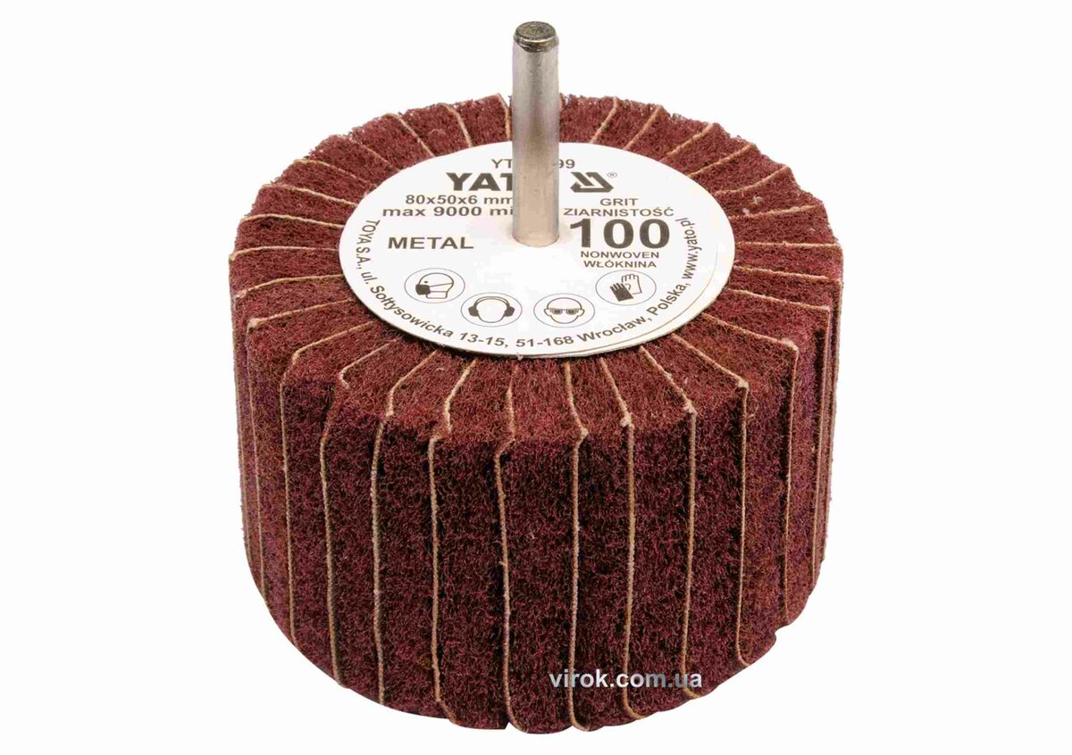 Круг пелюстковий шліфувальний YATO : подовжений Ø=80 мм, К150, шпиндель Ø= 6 мм, H= 50 мм [10/60]