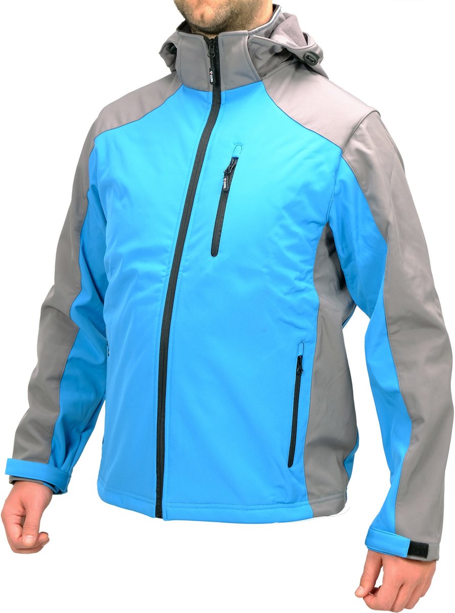 Куртка робоча SOFTSHELL з прикріпн капюшоном YATO розм S, синьо-сіра, 3 кишені, 96% поліес і 4% спан