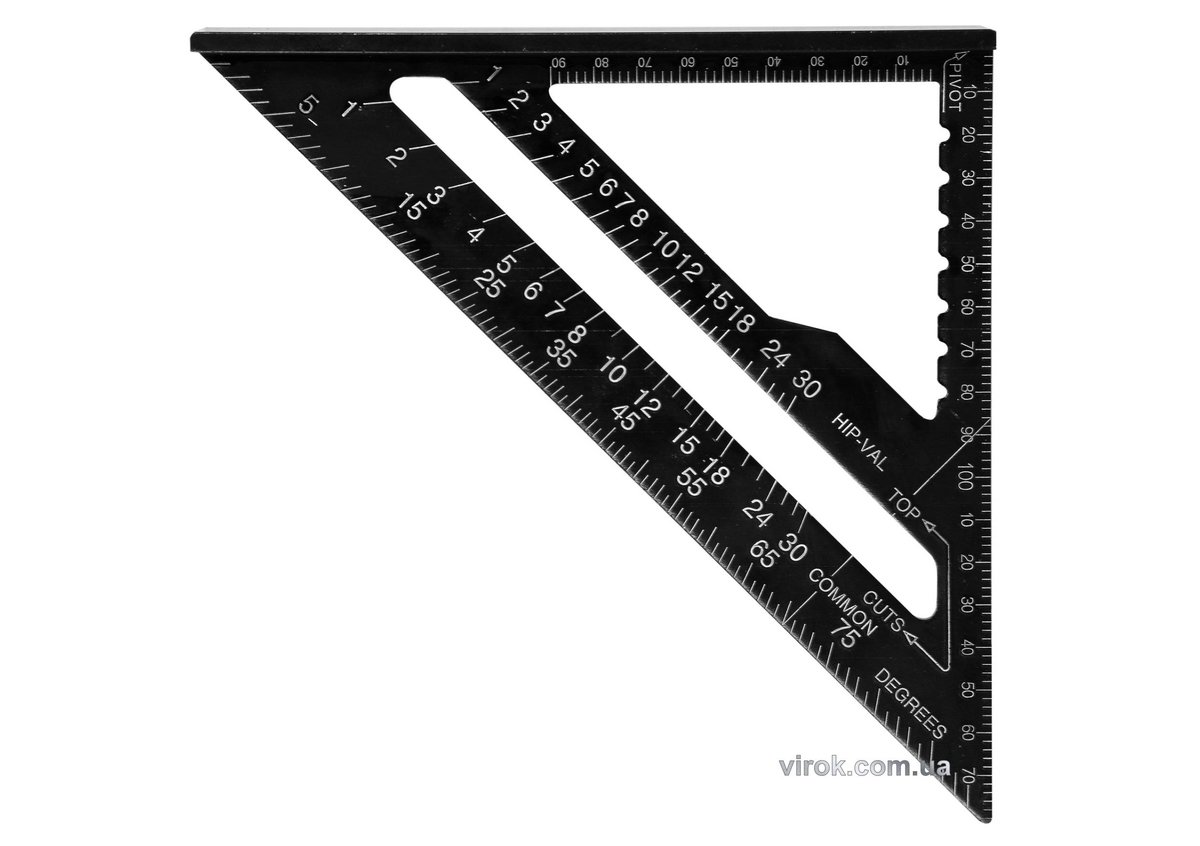 Кутник столярний 180 мм з упором . Матеріал алюмінієвий сплав, лакована поверхня, постійно розмічені міліметрова та дюймова шкали, а також спеціальні градуювання кутів для вимірювань в столярних та покрівельних роботах. Для лінійних і кутових вимірювань в теслярських, столярних і покрівельних роботах.