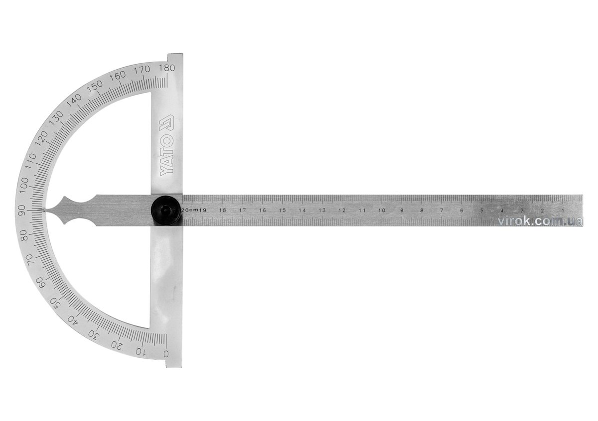 Кутомір- транспортир з лінійкою YATO; 150 х 250 мм, діапазони: кут- 0-180°, відстань- 0-200 мм [50]
