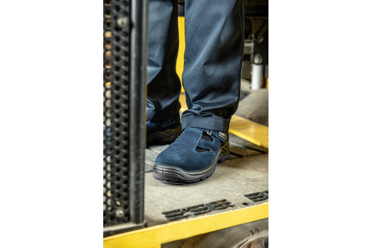 Высококачественные мужские защитные сандалии соответствуют классу безопасности S1P, изготовленные согласно нормам ISO 20345:2011. Изготовлены из замшевой кожи, что способствует комфорту и удобству. Обувь оснащена стальным подноском, который защищает пальцы ног от падающих предметов. Стальная стелька в подошве позволяет работать на поверхности с выступающими острыми предметами. Благодаря противоскользящей подошве сандалии идеально подходят для ходьбы по неровным и скользким поверхностям.