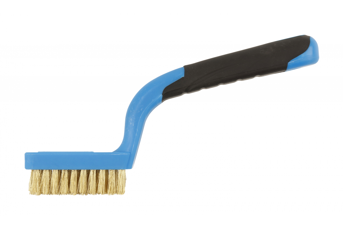 Щетка изготовлена из латунной проволоки, прочно закрепленной в пластиковом корпусе.