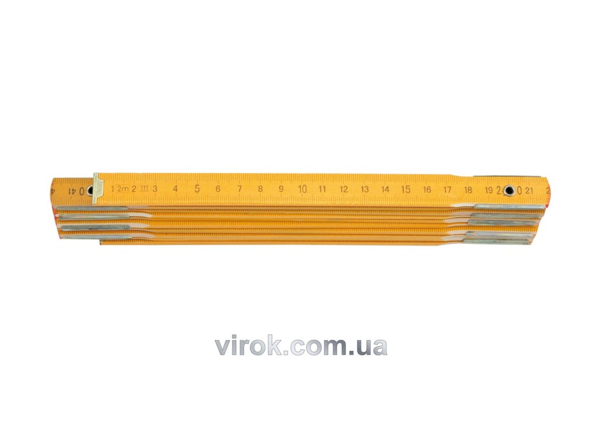 Класична складна дерев'яна рулетка з бука, пофарбована в жовтий колір, вологостійка, з'єднання рулетки посилені латунною фурнітурою.