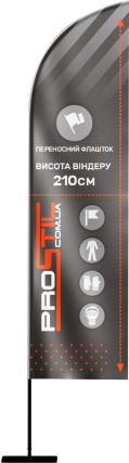 Самый популярный флагшток для использования с так называемыми пляжными флагами или ветряными мельницами. Изготовлен из алюминия и стекловолокна. Верхняя часть флагштока выполнена из гибкого стекловолокна, что позволяет крепить на нем флаги разных форм. Длина флагштока составляет 290 см. Каждый флагшток комплектуется крючком для натяжного троса и полиэстеровой сумкой для удобного хранения и транспортировки.