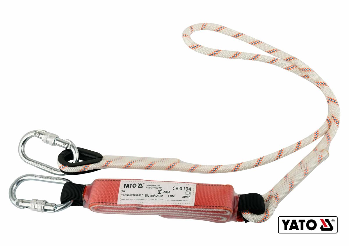 Мотузка з амортизатором і 2 карабінами YATO : L= 1.8 м, Ø= 12 мм [12]