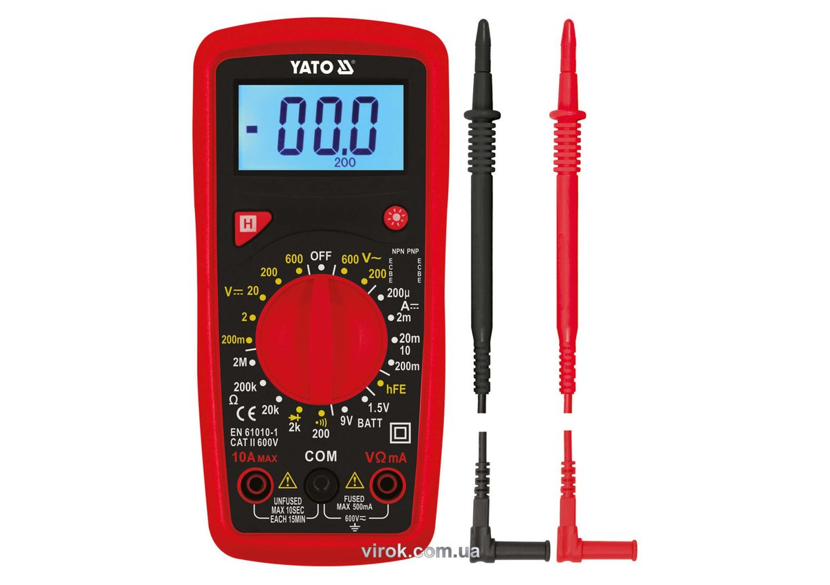 Мультиметр для вимірювання електр. параметрів YATO з LCD-дисплеєм і провідниковими контактами [50]