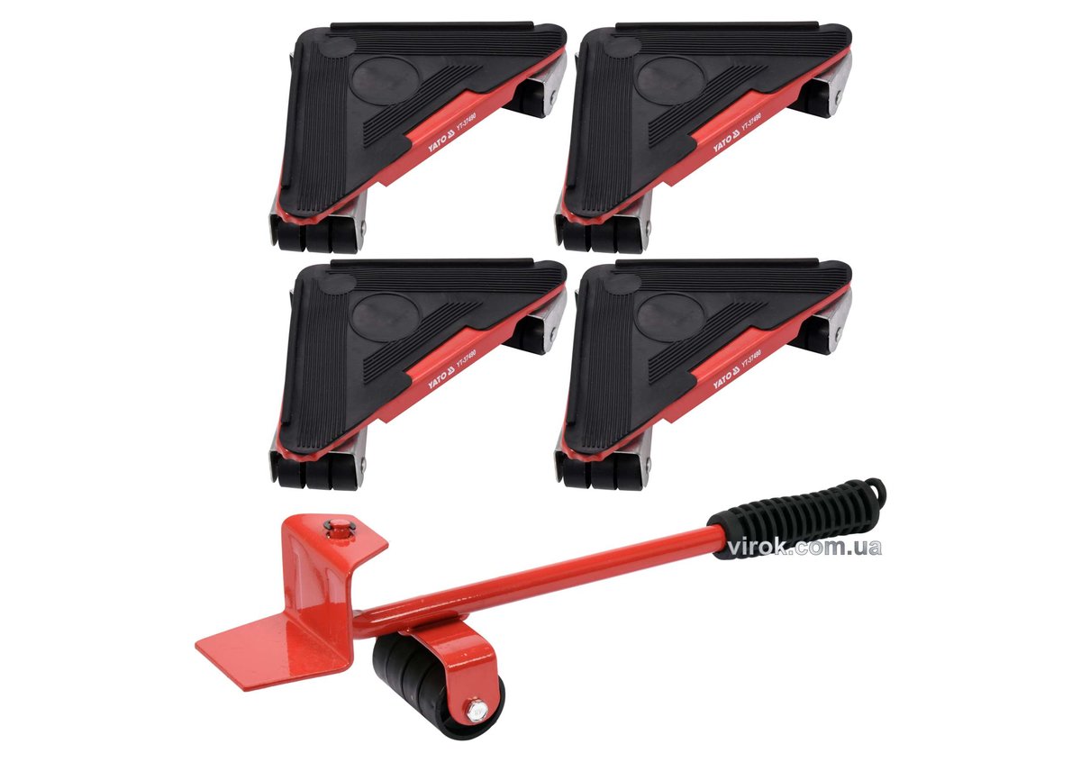 Описание товара ‐ Набір для переміщення меблів YATO : макс. вага-300 кг, висота-70 мм, 4 підставки+важіль, 5 елем. [6]