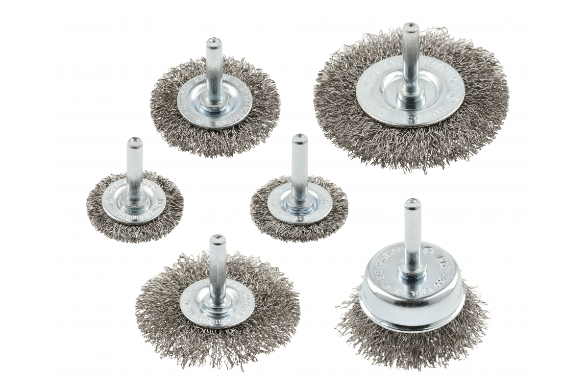 Набор проволочных щеток 6 шт, 2x37, 50, 62, 75 мм, сталь