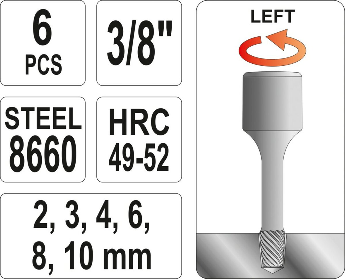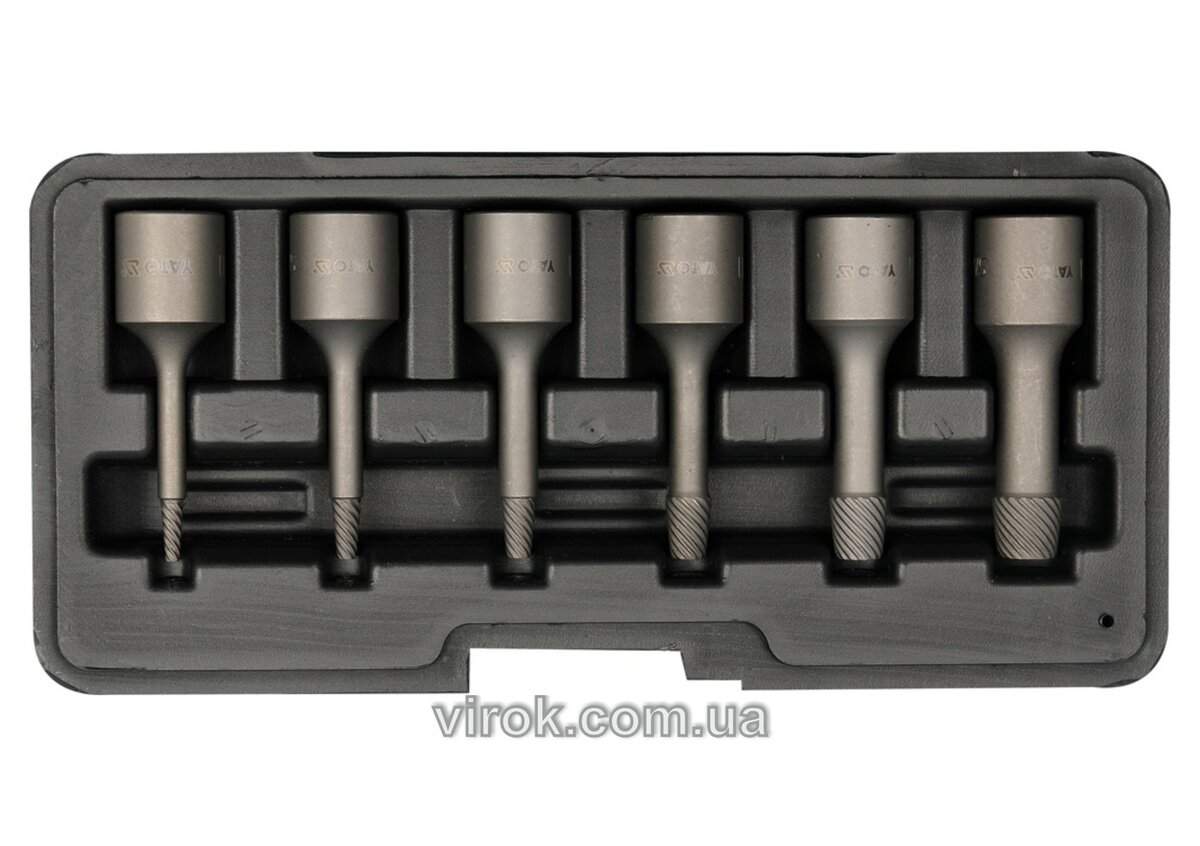Набір екстракторів YATO : квадрат 3/8". Ø= 2-10 мм, для гвинтів 8660 HRC 49-52. 6 Од. [50]