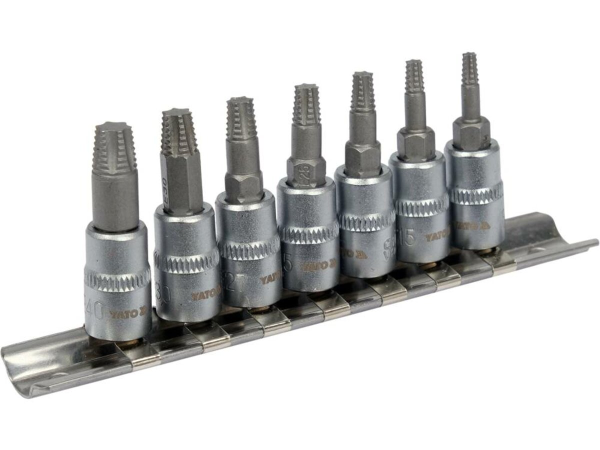 Описание товара ‐ Набір естракорів гвинтів YATO торцеві з TORX спіральні квадрат 1/4", 7 шт [15]