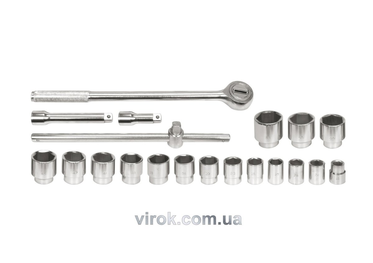 Набір головок торцевих VOREL : квадрат 3/4", M22-50 мм з тріщаткою та воротком, кпл. 20 од. [2/56]