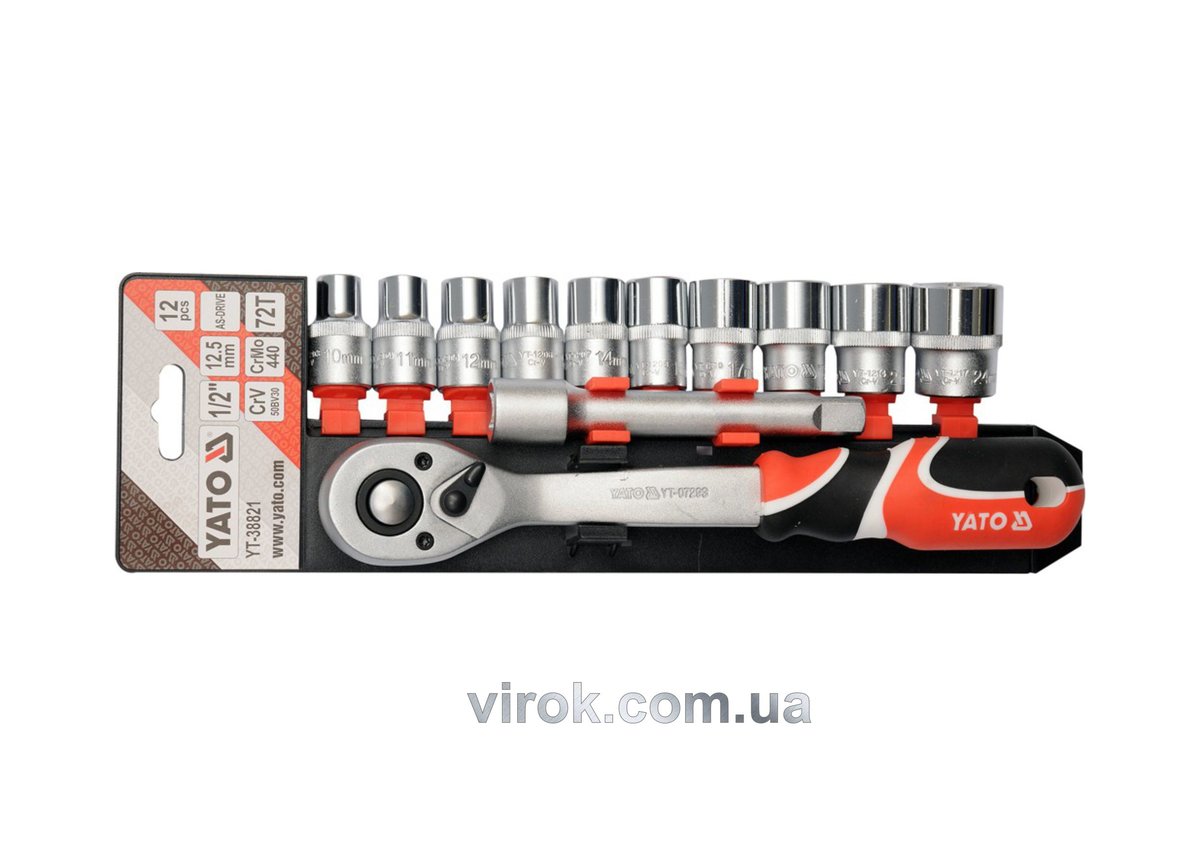 Набір головок торцевих YATO : квадрат 1/2", М10-24 з тріщаткою, подовжувачем. 12 Шт. [5/10]