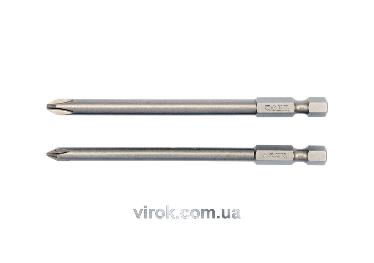 Набір насадок викруткових YATO : "Philips" PH1,PH2, L= 100 мм, квадрат 1/4". 2 шт. [25/100]