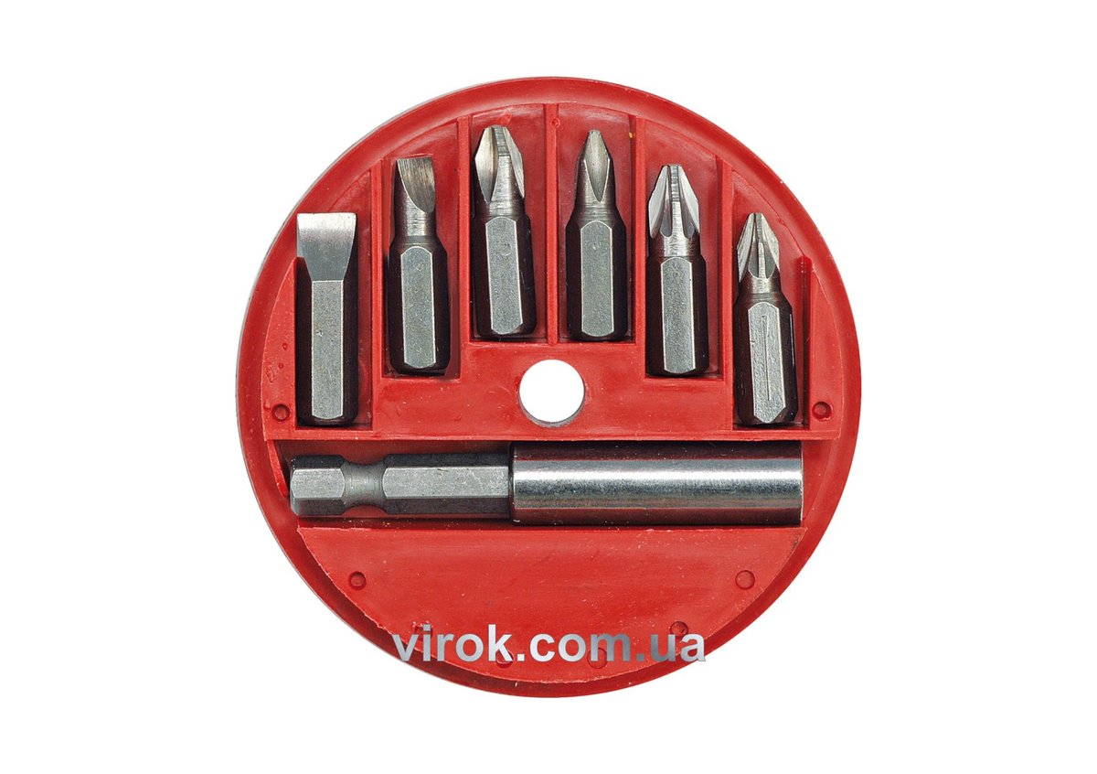 Набір насадок викруткових з подовжувачем VOREL : магнітним адаптер, футляр. Компл 7 шт. [20/200]