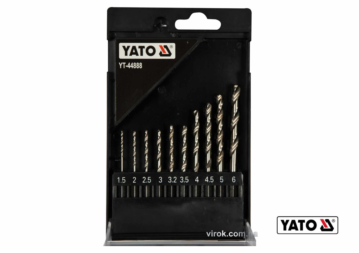 Набір свердл по металу YATO:HSS6542,Ø=1.5-6мм,HEX-1/4",для нерж.,конструкт.сталі,10 шт в футлярі(DW)