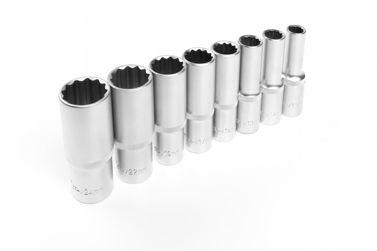 Набор насадок предназначен для работы с винтами и гайками, имеющими двенадцатиугольную форму головки.