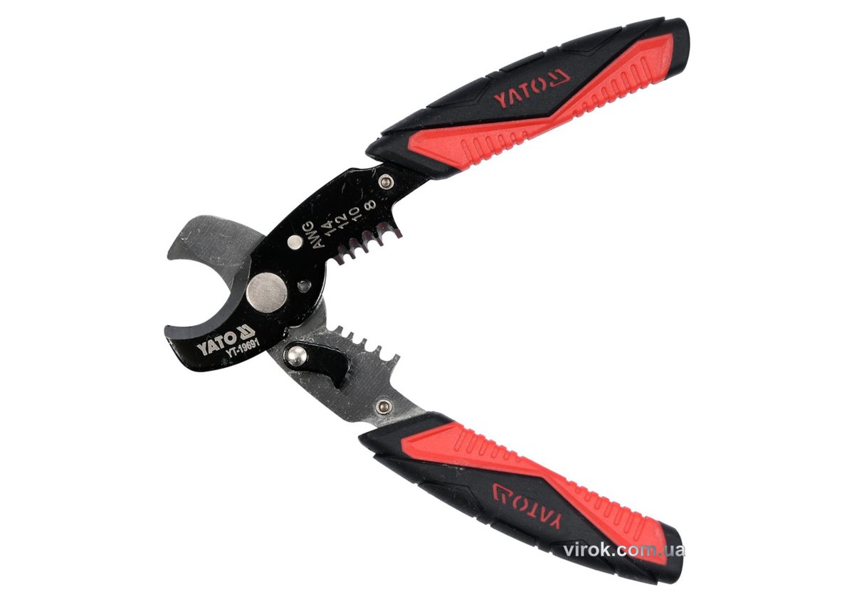 Описание товара ‐ Ножиці для дроту YATO : Ø=10,5/3 мм, зі знімачем ізоляції Ø=1.6-3.2 мм, l=170 мм [6/24]