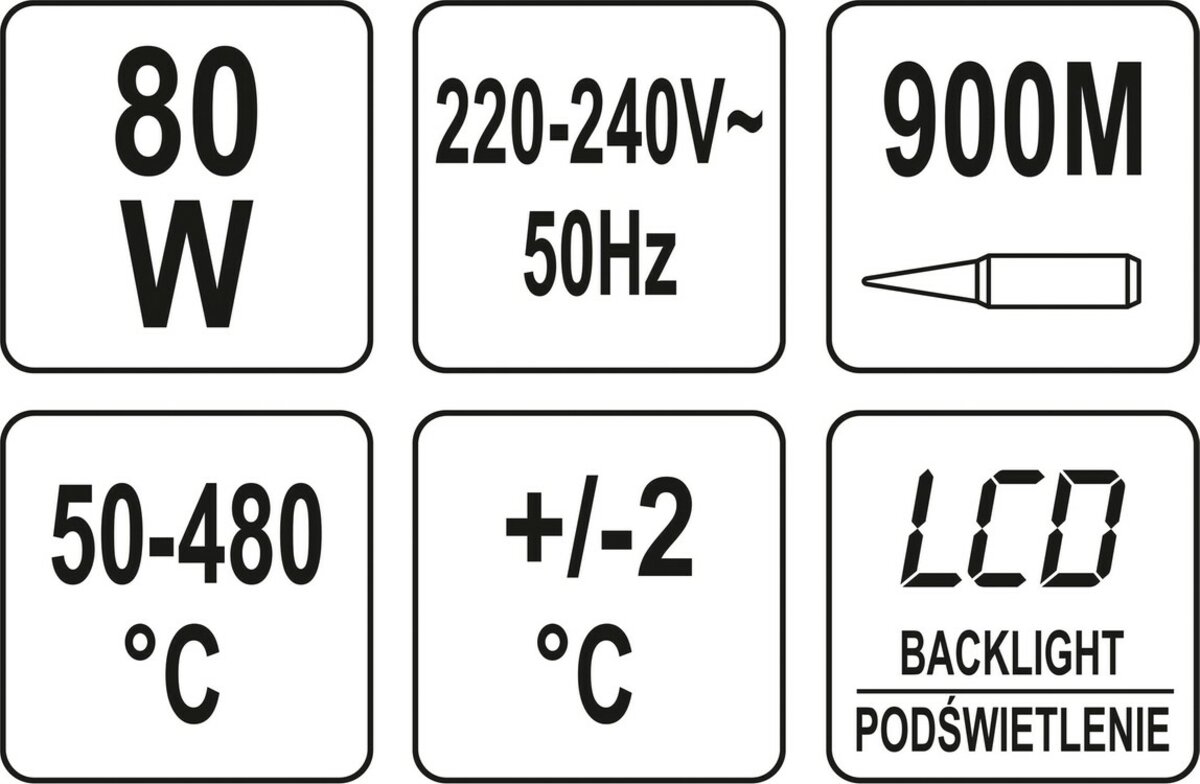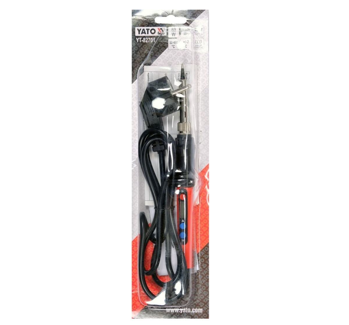Описание товара ‐ Паяльник мережевий YATO P= 80 Вт. з регулюванням t= 50- 480°С [10/50]