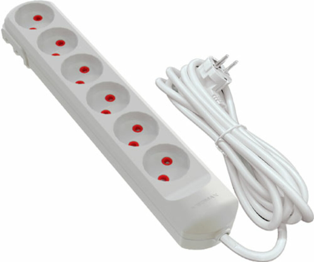 Описание товара ‐ Подовжувач мережевий VIROK: l= 5 м, з 6 гніздами без заземлення