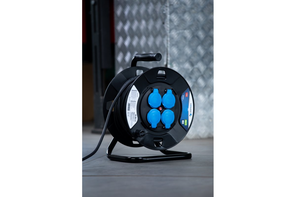 - высококачественный, практичный барабанный удлинитель позволяет одновременно подключить 4 устройства общей мощностью до 3000 W