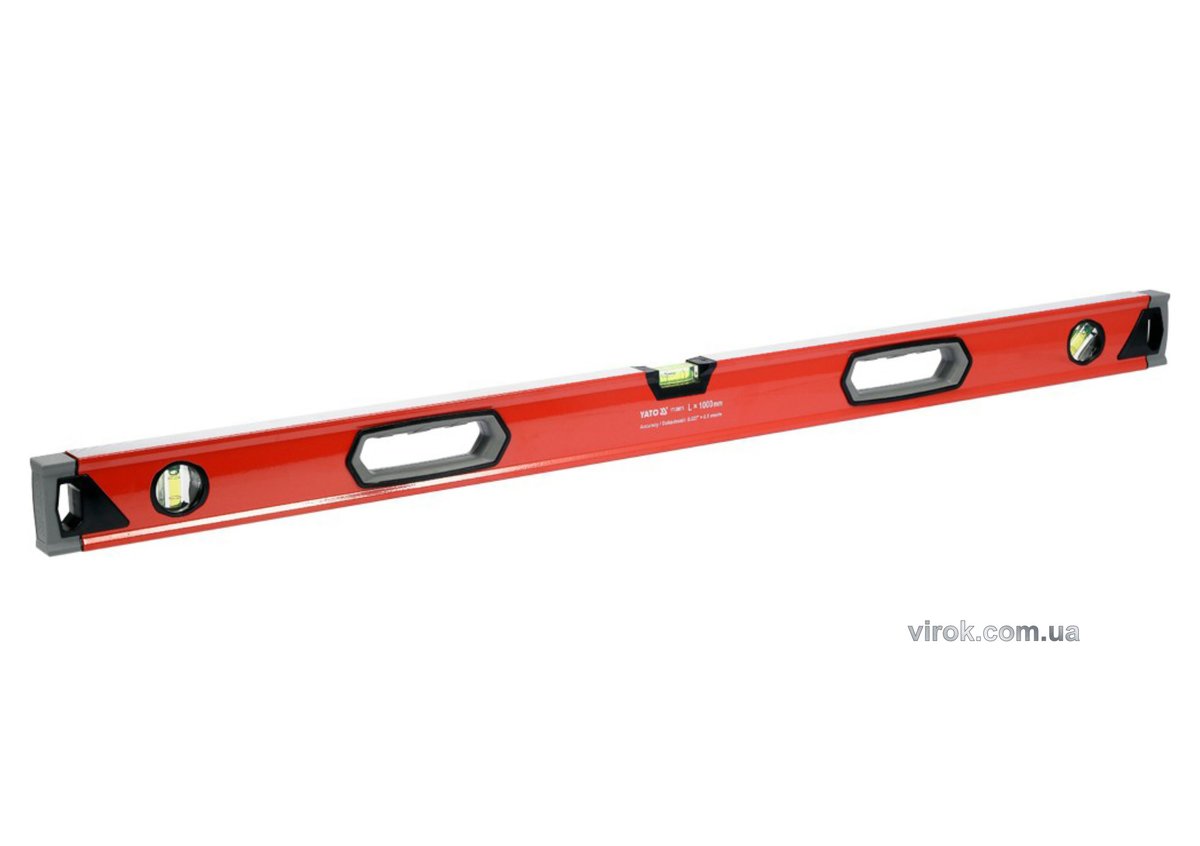 Рівень алюмінієвий YATO : L= 100 см. 3 капсули, 2 ручки [10/20/300]