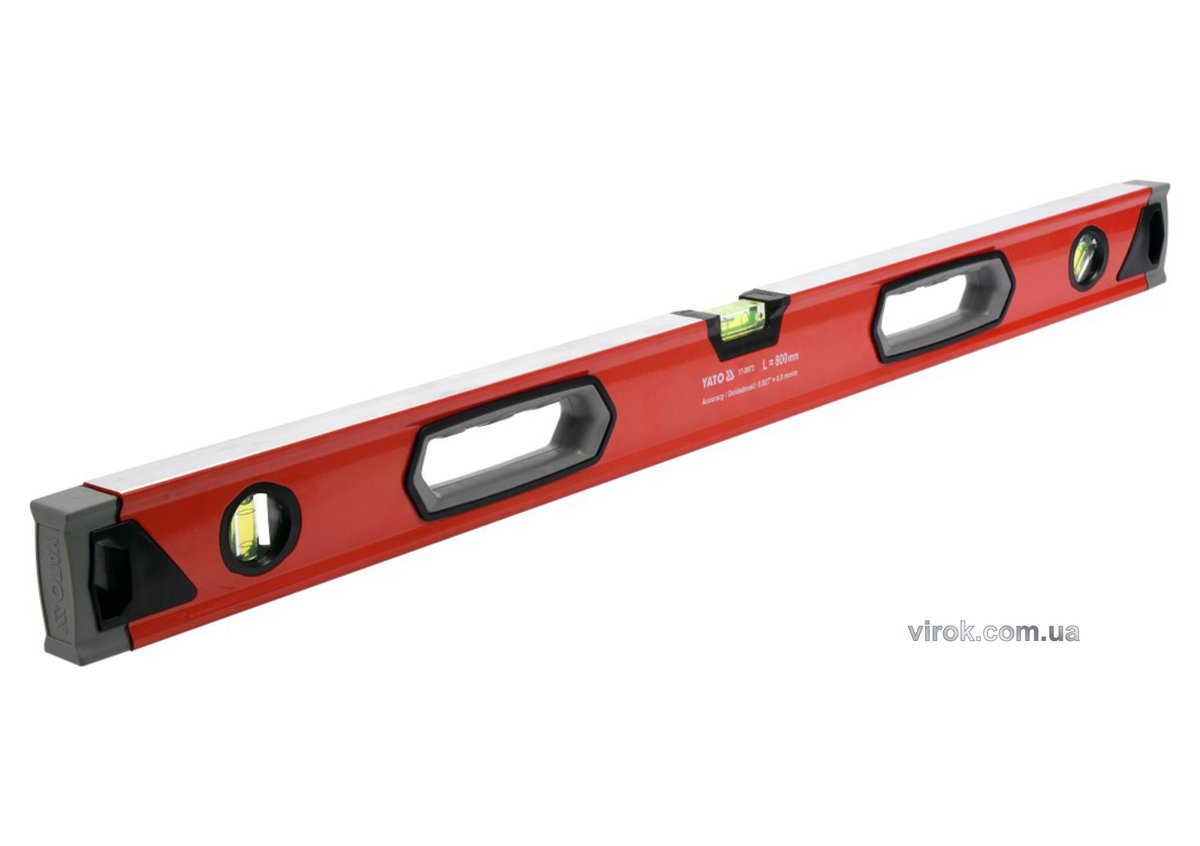 Рівень алюмінієвий YATO : L= 80 см. 3 капсули, 2 ручки [10/30/300]