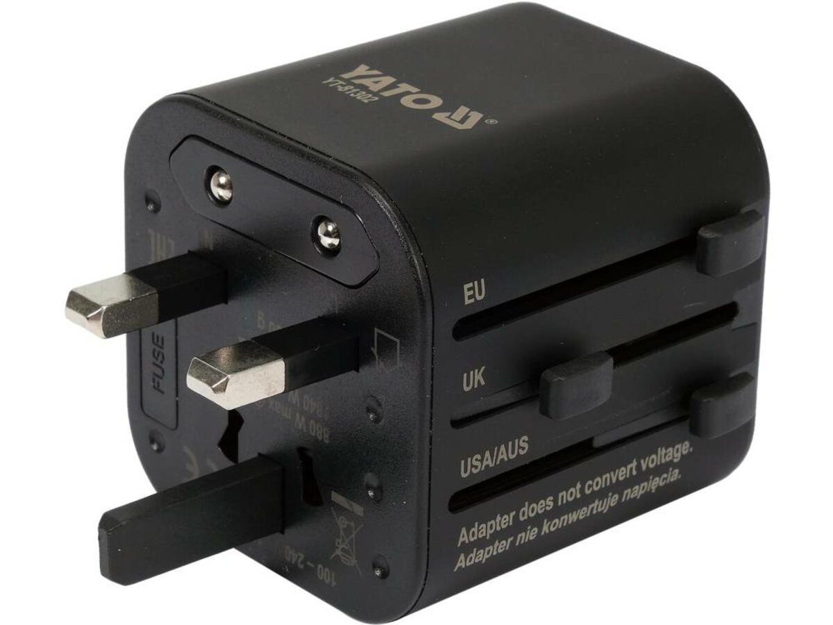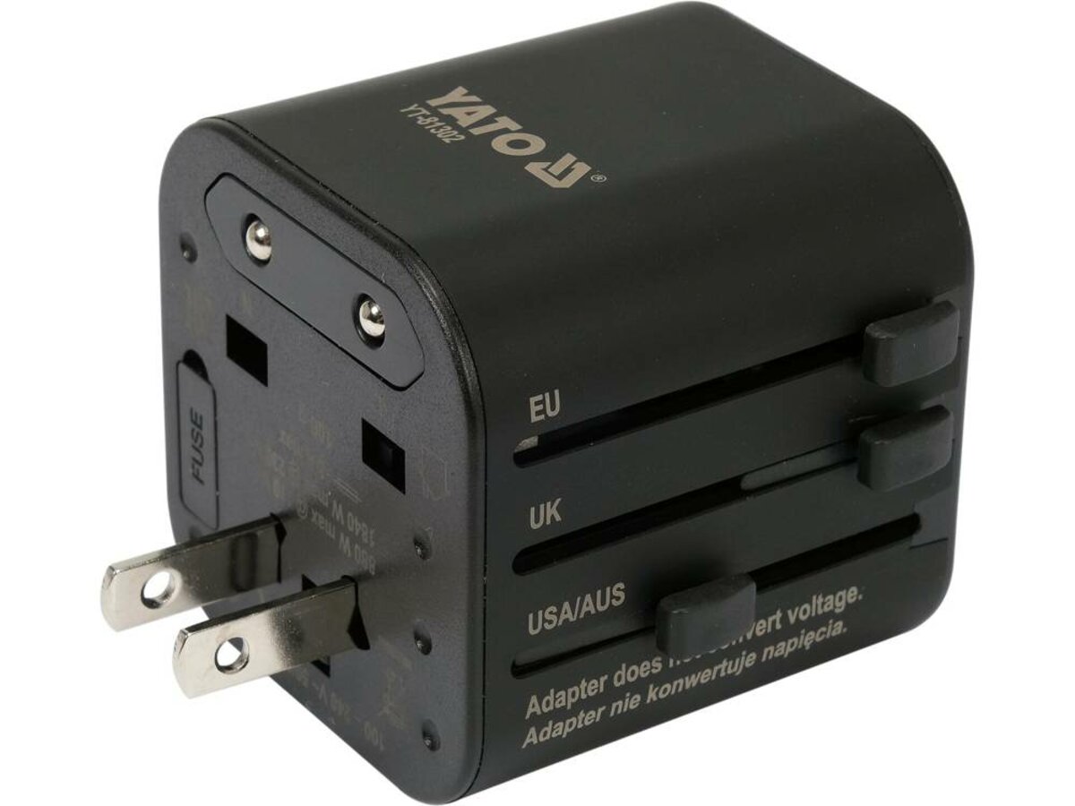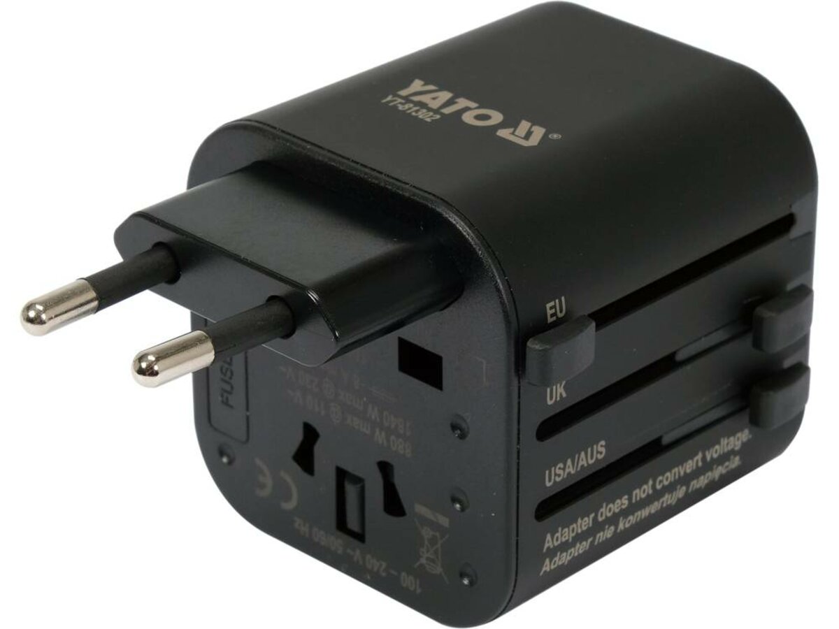 Розетка-адаптер електромережевий 110-240 В, до 8 А YATO з універсальним гніздом і вилками