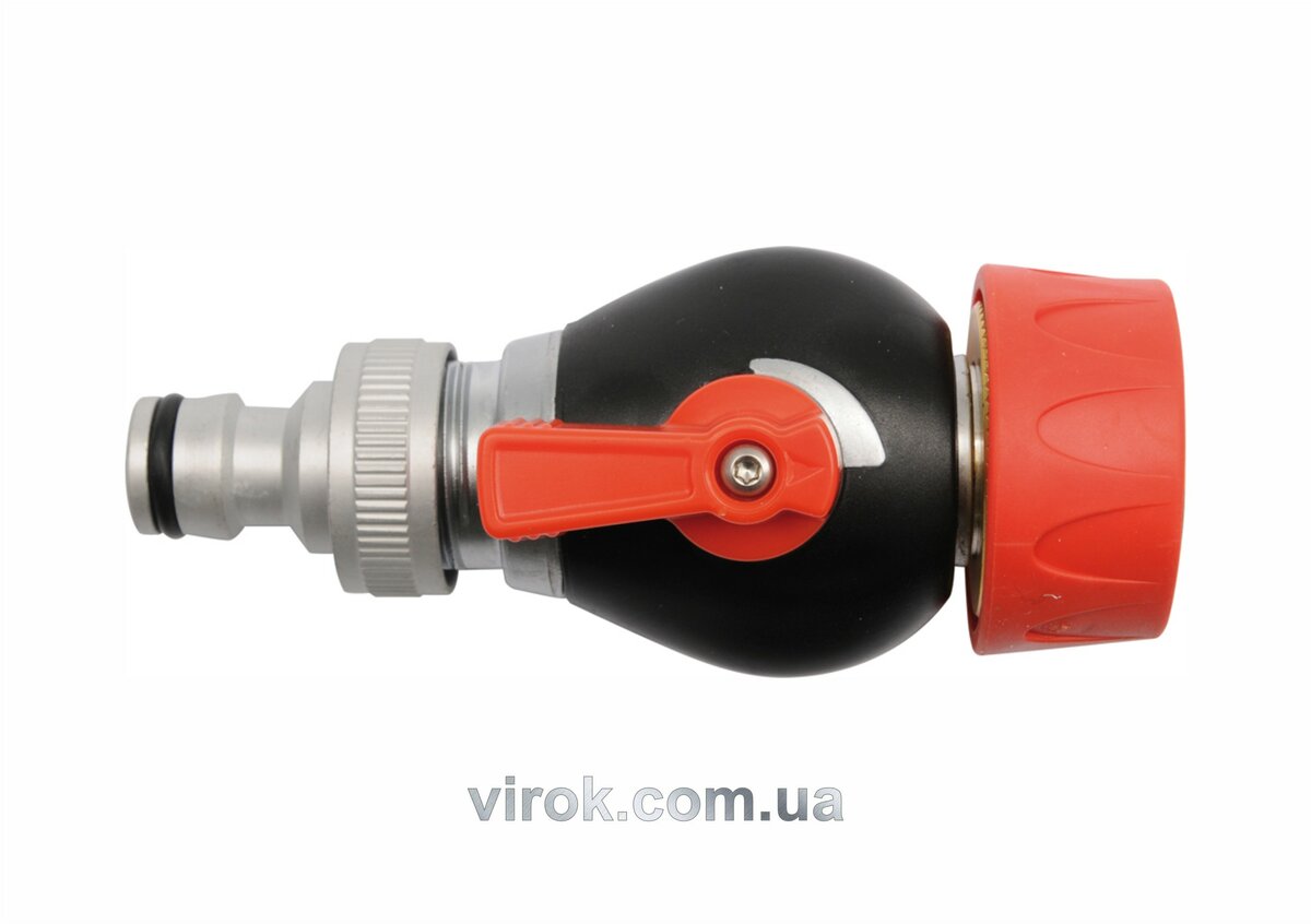 Вентиль для підключення садового шланга до крана. Забезпечує регульований потік води. Параметри: діаметр різьби [дюйм]: 3/4 матеріал: ABS, алюміній