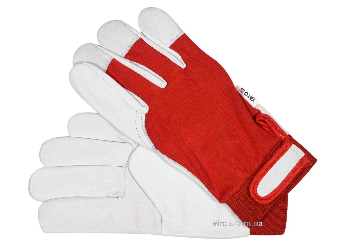 Описание товара ‐ Рукавиці робочі біло-червоні YATO : бавовна + шкіра, розмір 10 [10/120]